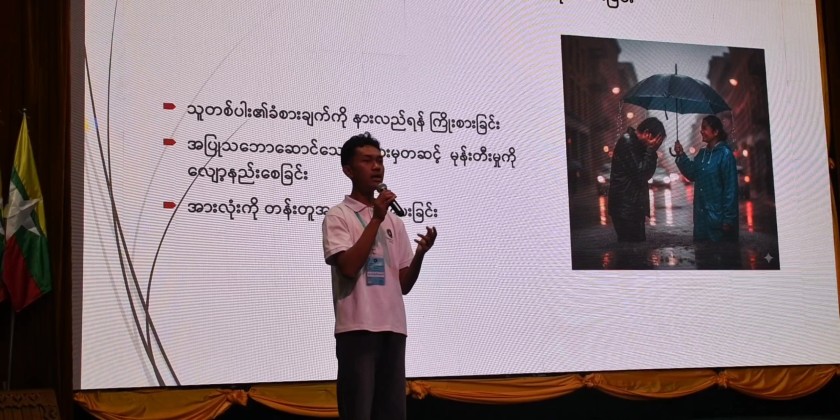 Next, an administrator from Loikaw Education Degree College shared the experience of attending the Youth Peace Forum-2026, and a youth representative from Loikaw University read and presented the "Youth Peace Forum-2026 Declaration."