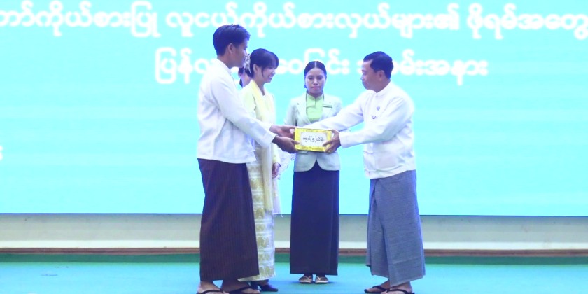 Next, Nay Pyi Taw Council Chairman U Than Tun Oo presented honorary awards to the Nay Pyi Taw youth representatives. Ten representatives then introduced themselves and provided a briefing on their group discussions at the forum.