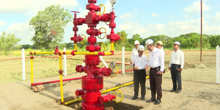 Deputy Minister of Energy U Kyaw Naing Win visited the Maubin (South) oil and natural gas field on April 9, to review ongoing operations. They inspected wells No. 16, 18, and 20, where natural gas and condensates are being extracted efficiently after research and sand layer management.