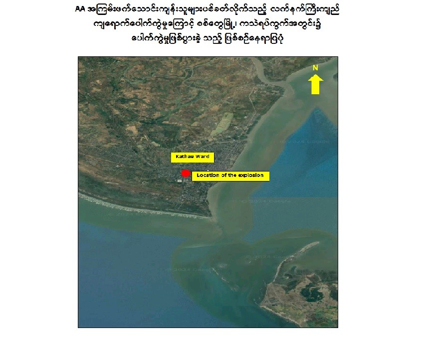 At around 10:10 pm on March 9th, the terrorists launched an attack from the west of Thaekhon Village in Pauktaw Township, using heavy weapons, resulting in an explosion at Kathae Ward in Sittwe.