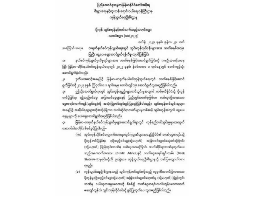 According to an official of Ministry of Commerce, the payments for importation and exportation at the border through banking transaction was implemented as a first step in Myanmar-Thailand border trade on 1st November 2022.
