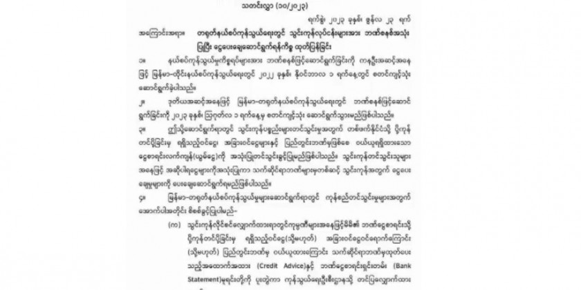 For the importation at the Myanmar-China border gates, companies need to applying to the Department of Trade for an import license must produce credit advice and original bank statements that prove the receipt of export earnings or other earnings into their bank account.