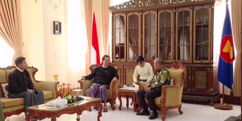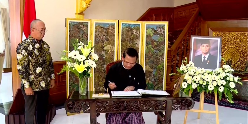 Upon arrival, the Union Minister met with the Charge d’ Affaires a.i. and officials of the Embassy, expressed his condolences, on behalf of the Government of the Republic of the Union of Myanmar, on the passing of the former Vice President of Indonesia, and signed the condolence book.