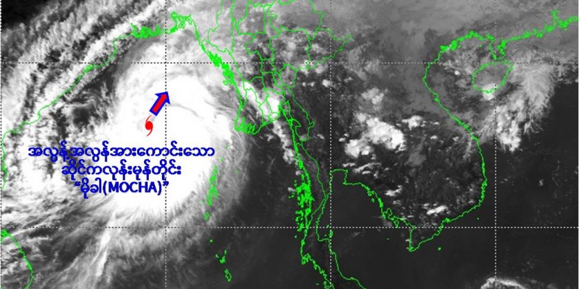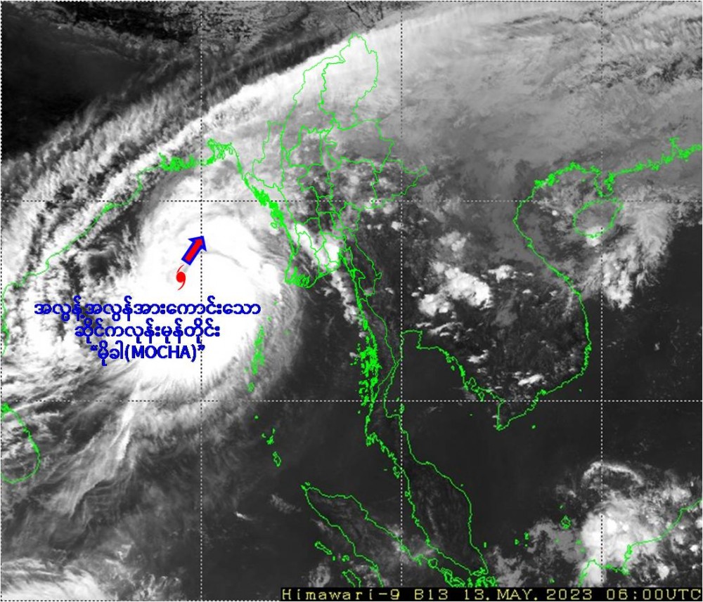 The Extremely Severe Cyclonic Storm “MOCHA” is likely continue to move North-Northeastwards and forecast to cross between Cox’s Bazar (Bangladesh) and Kyaukphyu (Myanmar) near Sittwe (Myanmar) around afternoon of (14.5.2023) as a Very Severe Cyclonic Storm “MOCHA”. Thereafter it is likely continue to move North-Northeastwards towards Chin State and Magway, Sagaing Regions as a Severe Cyclonic Storm “MOCHA”.