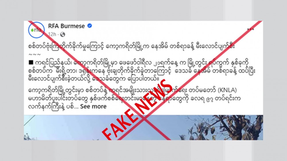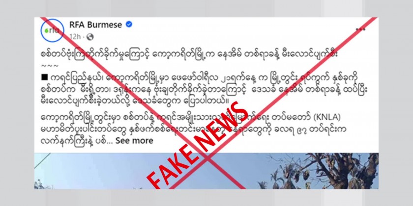 One of the subversive media outlets, RFA, spread fabricated news on social media platform, claiming that about 100 houses in Kawkareik of Kayin State were burnt down due to the arson attack and drop bomb by Tatmadaw on 21st February.
