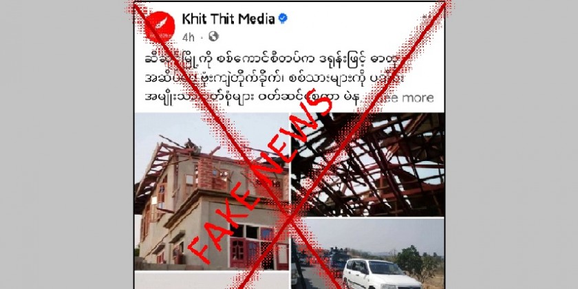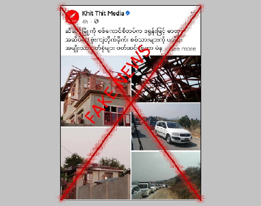 Fake news intentionally spread by one of the illegal destructive media outlets, Khit Thit Media, allege that Tatmadaw launched chemical bomb attack on Hsihseng Township in Southern Shan State using drones on 6th of March. In response to this misinformation, a security officer said that there was no security operation in Hsihseng Township on 6th of March.