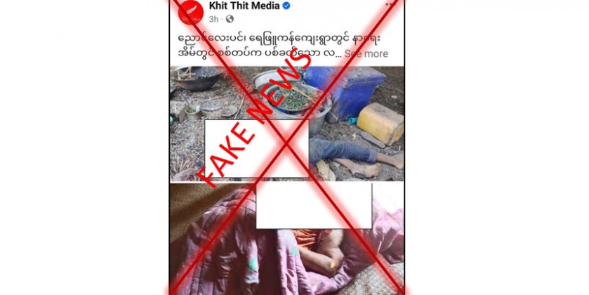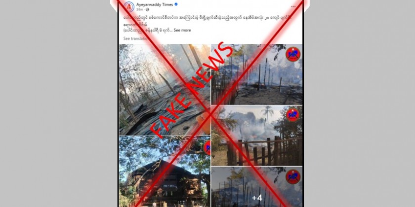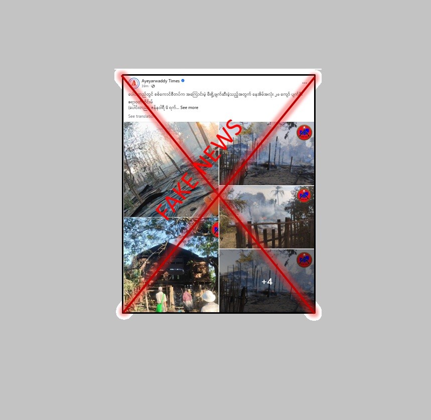 Fabricated news on social media claimed that 20 houses were destroyed in Taung Khamauk Village of Paungte in Bago Region due to an arson attack by the Tatmadaw.