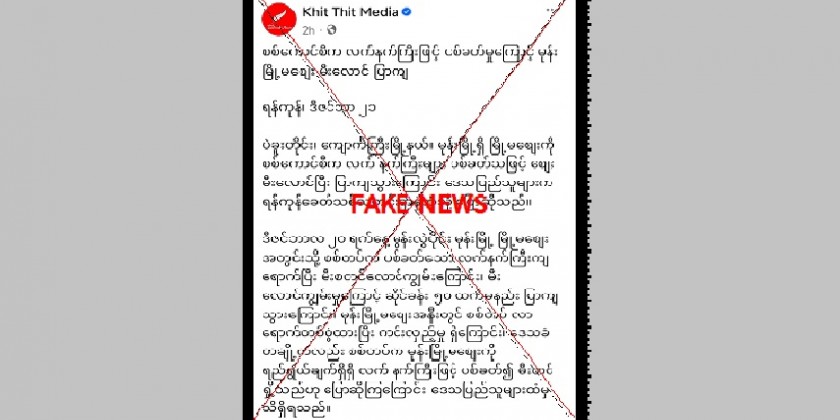 Misinformation has swept through social media platforms, alleging Myoma market in Mone Town, Kyaukgyi Township of Bago Region was burned down by heavy weapon attack of Tatmadaw on 20th of December.