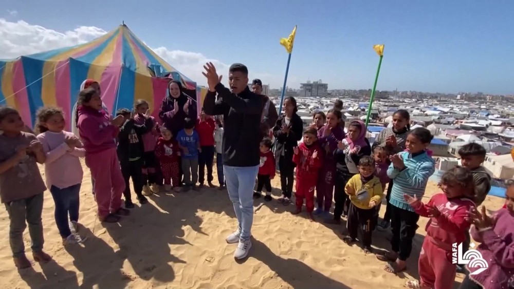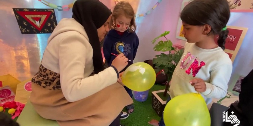 Children in a camp for displaced Gaza residents receive psychological support sessions with face-painting, singing, and kite-flying.