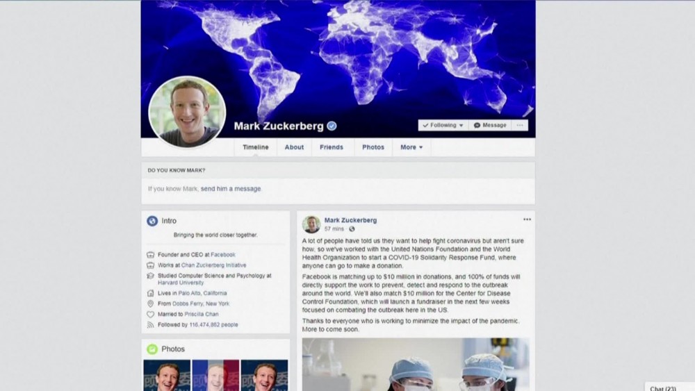 Facebook founder and CEO Mark Zuckerberg announced on Friday that he was matching up to 20 million dollars in donations to help fight coronavirus. In his Facebook post, Zuckerberg said he was donating 10 million dollars to the COVID-19 Solidarity Response Fund, a project in conjunction with the United Nations Foundation and the World Health Organization.
