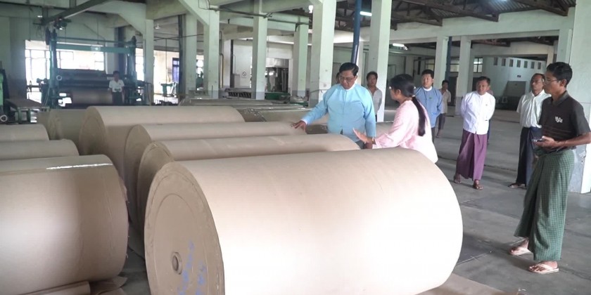 Union Minister for Industry Dr Charlie Than visited Yeni Paper Mill in Bago Region on Saturday to assess the impact of floods.