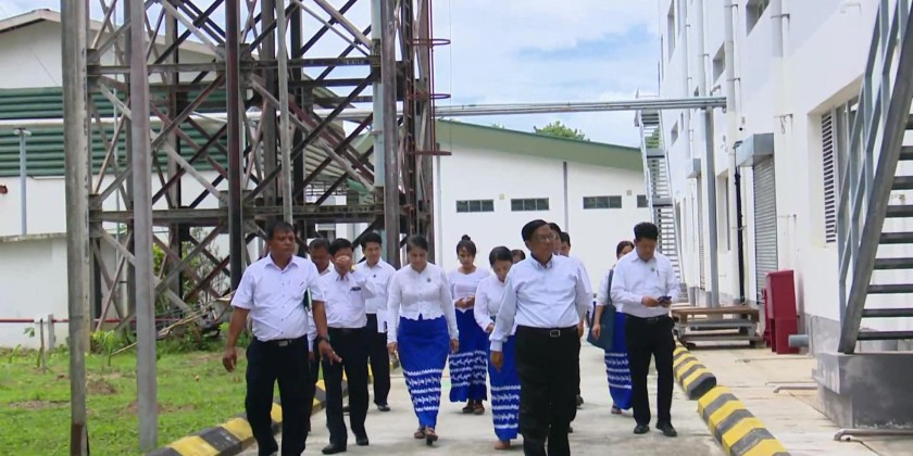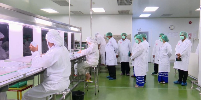 Union Minister for Industry Dr. Charlie Than visited the Pharmaceutical Factory (Inyaung) in Kyaukse Township of Mandalay Region, on Saturday to inspect renovation works and preparations to resume intravenous (IV) fluid production after earthquake damage to the facility.