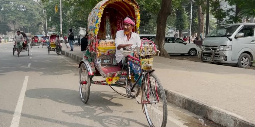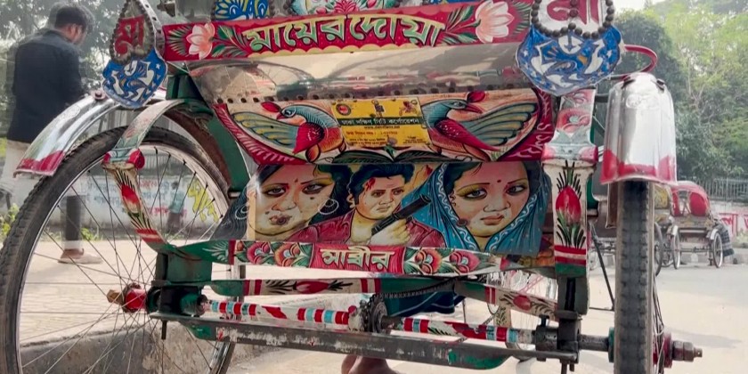 Rickshaw mechanic Mohammad Sabuj says he is mourning the decline in the "beautiful" paintings, which adorn the vehicles' carriage covers, seats and footrests. "It has become rare nowadays," he said.