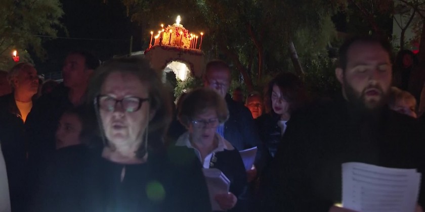 Hundreds of faithful took part in a procession marking Orthodox Good Friday in the Greek seaside town of Tolo. A flower-decorated epitaph representing the tomb of Christ was carried into the sea, while fishermen set flares alight.
