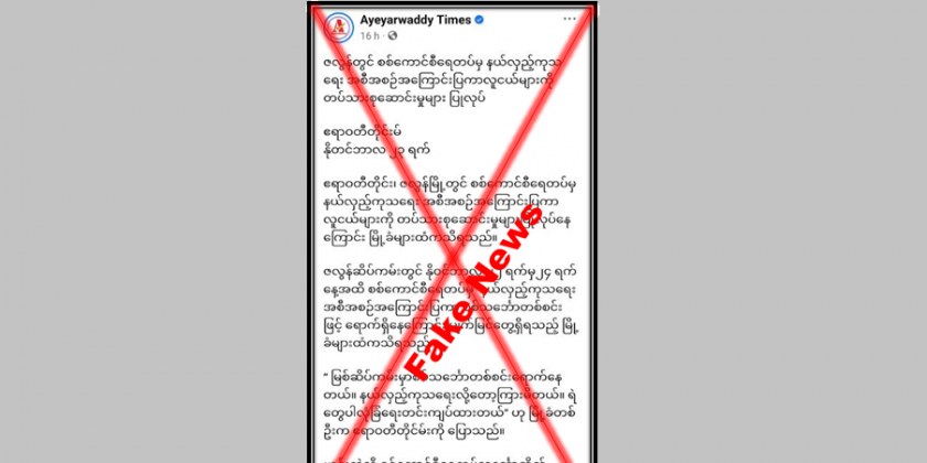 The Ayeyarwaddy Times Media recently disseminated misleading information on a social media platform, falsely asserting that the Tatmadaw's mobile medical vessel in Zalun of Ayeyawady Region, was recruiting youths.