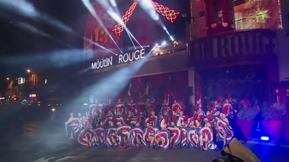 The Moulin Rouge, the Paris home of the can can, celebrated its 130th anniversary with a lights and dance show on Sunday.