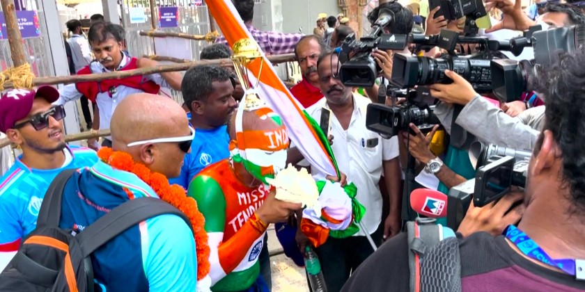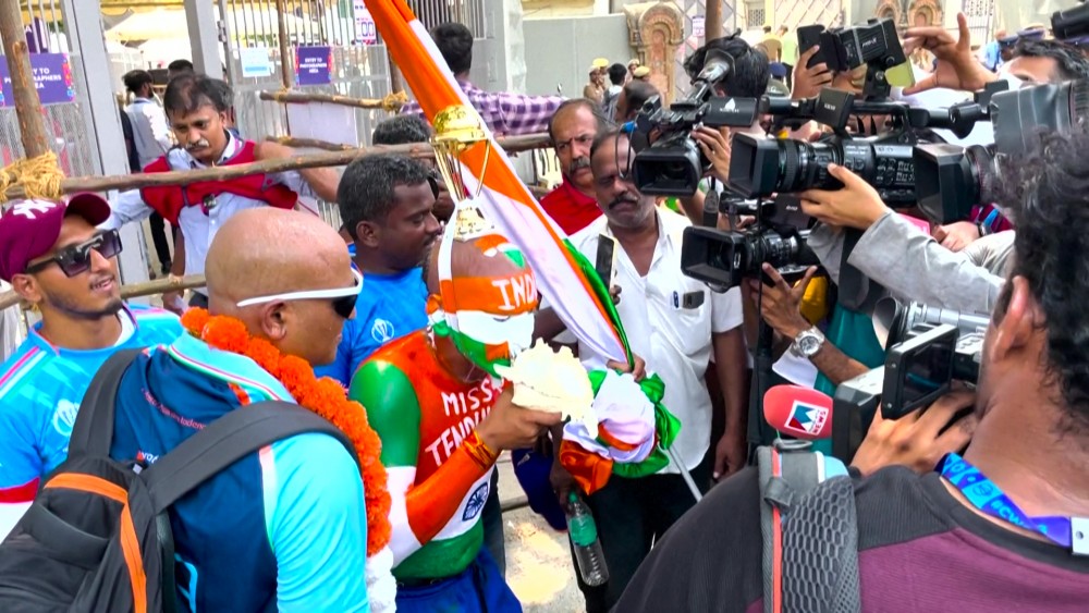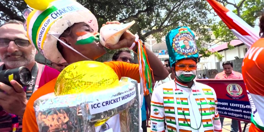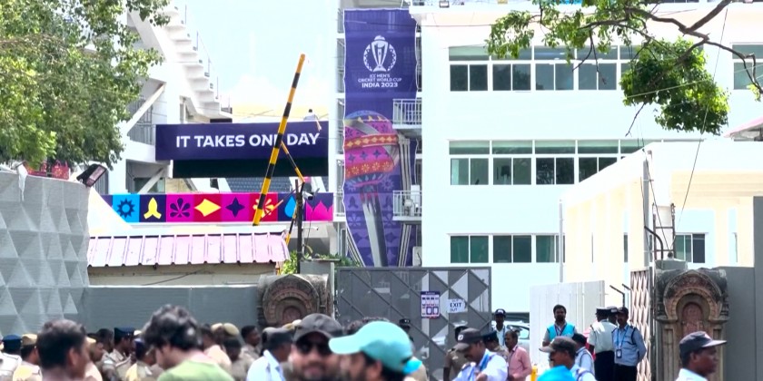 Fans gather at stadium, which is hosting the ICC Men's Cricket World Cup match between two-time champions India and five-time World Cup winners Australia. The tournament is being hosted by India, it started on 5 October and is scheduled to conclude on 19th November.