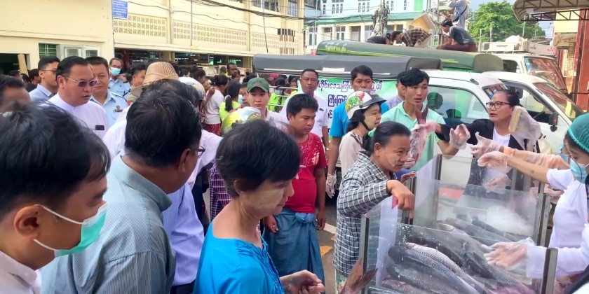 Then, the Chief Minister instructed to arrange for the direct sellers of farmers and livestock breeders in shop with rain cover, to convey the information to the wards and villages on the market selling with affordable price and oversee by the responsible persons to be reasonable price, fresh and clean, systematic disposal of garbage and daily opening of local products market.