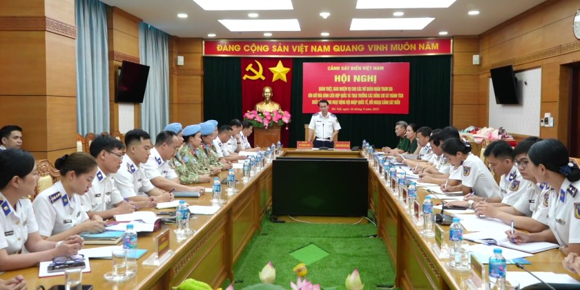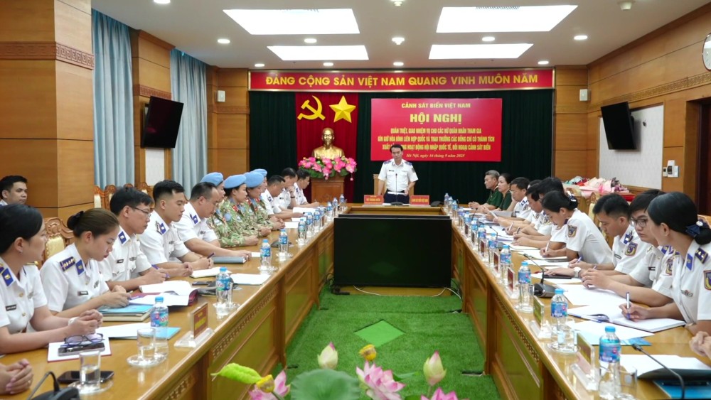 On September 16, the Viet Nam Coast Guard Command held a meeting to assign tasks to four female service members who recently completed training and were selected to join Engineering Team No. 4 in the upcoming United Nations peacekeeping mission.