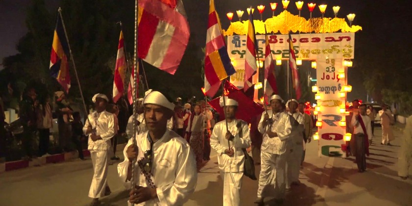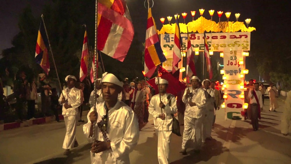 About 1,000 participants from 22 wards in the town joined the procession, organized by the State Government. The procession started from the State Sports Ground, and marched along Bogyoke Aung San Road till Sula Muni Lawka Chan Tha Pagoda.