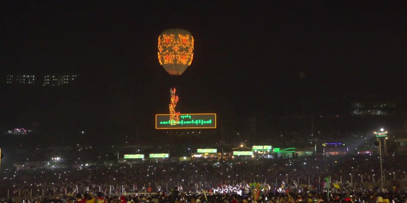 Chief Minister U Aung Aung and wife together with the officials enjoyed the procession together with the residents. At Awaiyar Hot Air Balloon Releasing Ground, the Taunggyi Tazaungdaing Hot Air Balloon Releasing Competition continued with the release of Nya Mee Gyi and Sein Na Pan hot air balloons, along with the entertainment programs.