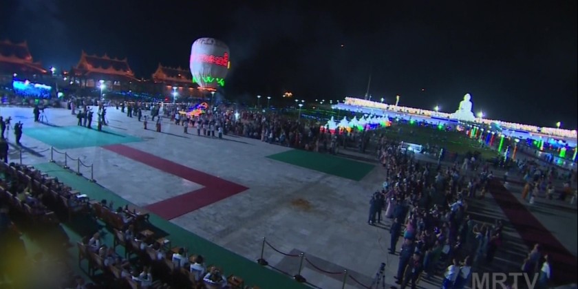 The annual Tazaungdaing Lighting Festival and Hot Air Balloon Releasing Ceremony have begun at the Maravijaya Buddha Image in Nay Pyi Taw Dekkhinathiri Township, the world’s tallest seated Buddha Image. Thousands of devotees from across the country visited to offer lights, flowers, and water to the sacred image, participate in candle lighting and balloon releasing, and enjoy the beautifully decorated Buddha Park illuminated with LED lights.
