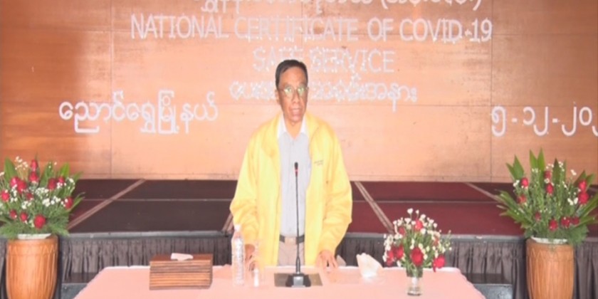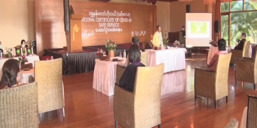 After that, the Shan state director from the Department of Hotels and Tourism explained the status of the Enchanting Myanmar Health and Safety Protocol (HSP) National-Level certification process. Afterwards, the Union minister awarded officials from Aureum Palace Resort and Myanmar Treasure Resort with the National Level Certificate for Health and Safety (HSP).