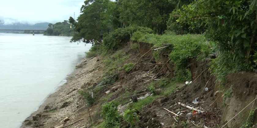Kachin State Chief Minister U Khet Htain Nan and officials on 22nd June made inspection tours at HoeLaw and RawankaHtaung villages, Waimaw township of Kachin State where some erosions of riverbanks occured after rising the water level of Ayeyarwady river due to the torriential rain during May and first week of June.