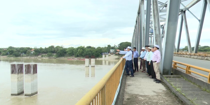 Next, the Chief Minister and party arrived at MaDain 100-Acre Model plantation conducted by State Fund where they met with official and inspected the field. The Chief Minister and officials proceeded to MyitKyiNa and inspected along the bank of the Myitkyina and Waimaw through Balaminhtin bridge and instructed to ensure the preparatory measures for the flood.