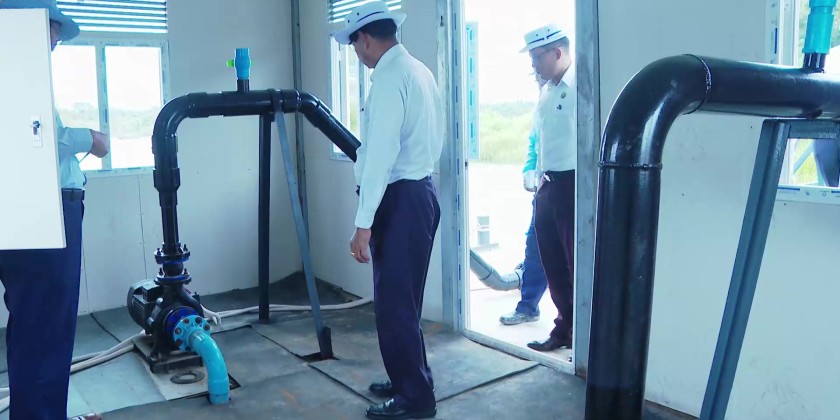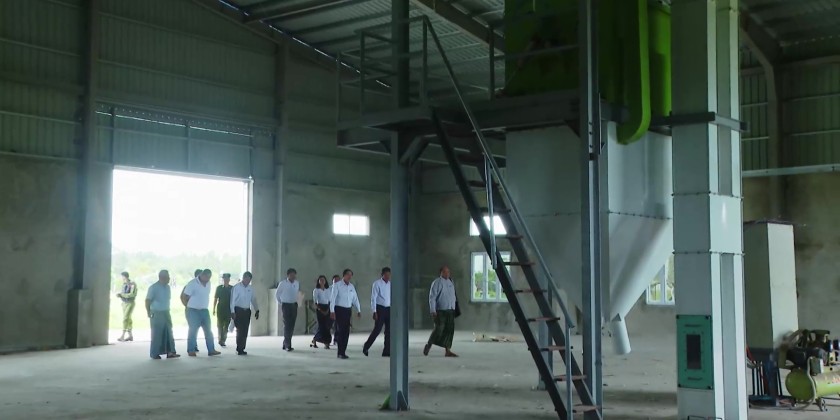 They then visited the Kan Gyi Kone Reservoir within the Twantay Livestock Zone to observe the storage of water and the pumping of water using solar-powered pumps into a 10,000-gallon overhead tank and a 10,000-gallon underground tank for distribution to livestock farms. They also inspected ongoing works for the construction of the Zone Management Office and a feed factory, and visited local cattle, pig, and poultry farms. The Chief Minister urged livestock entrepreneurs to expand farming activities to contribute to regional food security and to increase the cultivation of animal feed crops.