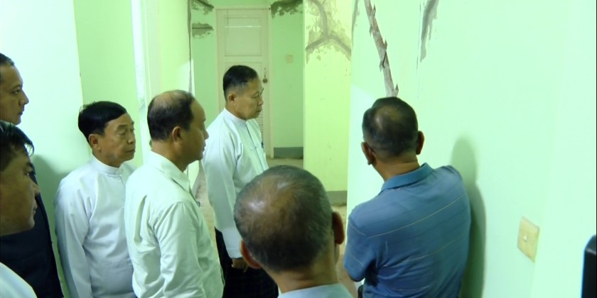Vice Chairman of the State Administration Council, Deputy Prime Minister, Chairman of National Natural Disaster Management Committee, Vice Senior General Soe Win, together with Union Ministers, Chairman of the Nay Pyi Taw Council, the Commander of Nay Pyi Taw Command, and committee members, conducted field inspections on May 26, to assess the status of repair works being carried out on ministry buildings, staff housing, and dormitories.