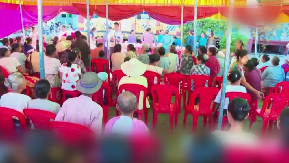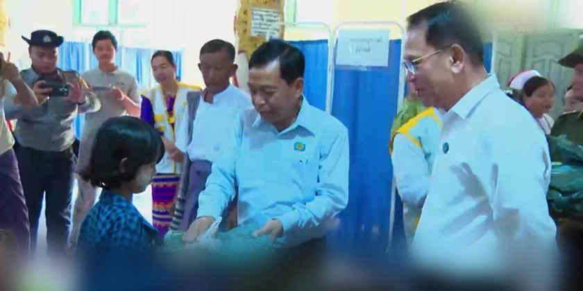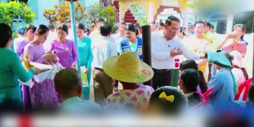 First, the work committee team led by the Union Minister visited the Mingalar Yan Aung Monastery in Ohn Pin Village, Tatkone Township. They observed and supported the healthcare services being provided by a health team, including senior specialist doctors, to local residents from Ohn Pin Village and surrounding villages, as well as the distribution of consumer goods and medicines.