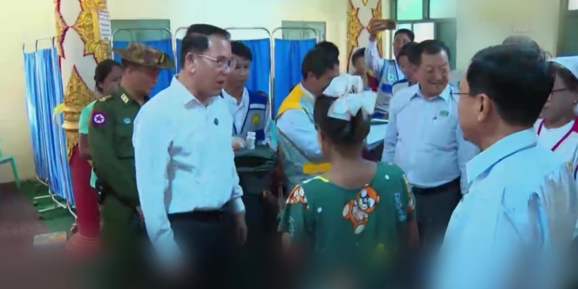 Union Minister for the Ministry of Information U Maung Maung Ohn, Chairman of the Committee for the Development of Resilient and Progressive Community, along with Nay Pyi Taw Council Chairman U Than Tun Oo and Nay Pyi Taw Council members, visited and showed support for the field medical treatment services being provided by specialist doctors from the 300-bed People's Hospital (Nay Pyi Taw) and the 100-bed People's Hospital (Tatkone) in Ohn Pin Village, Tatkone Township on October 25.