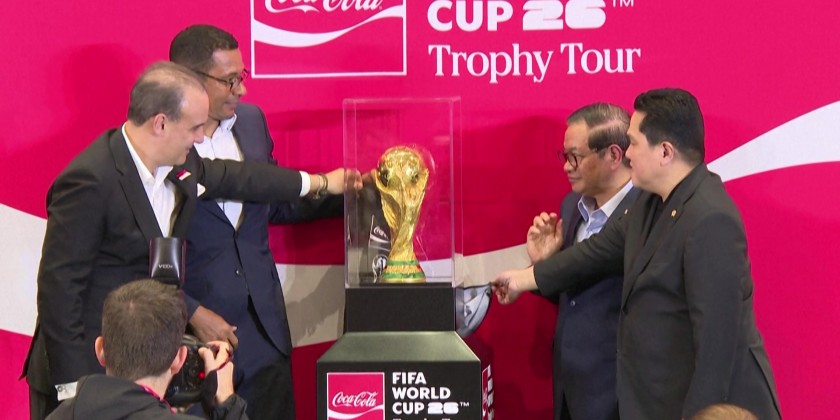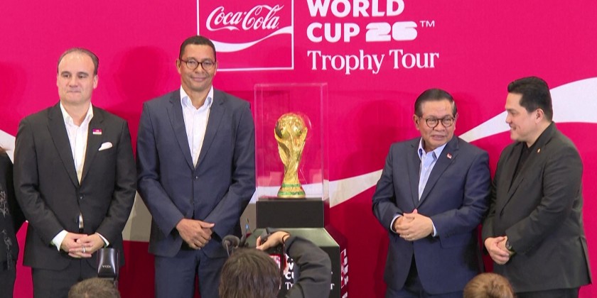 The FIFA World Cup trophy is unveiled in Indonesia's capital Jakarta on Thursday, as the country joins the global trophy tour ahead of the 2026 tournament, co-hosted by the United States, Canada and Mexico. The 18-carat gold prize has just been in Malaysia and goes on display under tight security at the Jakarta International Convention Center.