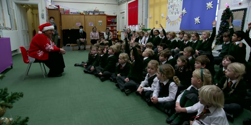 Singers from the Singology Community Choir were shown providing vocals for the festive message. There was also a special role for children from a local primary school who created decorations for the illuminated Christmas tree which glowed behind the monarch at Windsor Castle. The televised Christmas Day message, which will be broadcast on X-Mas Day, is a tradition in Britain.