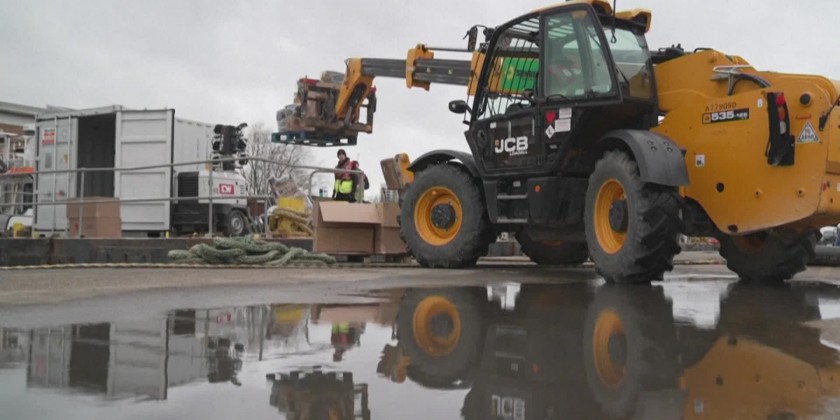 Workers loaded tonnes of fireworks that will be used in London's New Year's Eve display onto barges as preparations for the event enter their final stages.