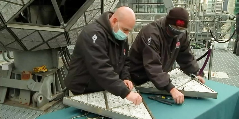 Workers finished the installation of the 192 Waterford crystal triangles that adorn the ball every year. This year's design is called the "Gift of Wisdom." Revelers will ring in the new year in New York's famous square on Friday. Viewing areas will be limited to about 15,000 to allow for more distancing, and everyone in attendance must show proof of vaccination and wear a mask.
