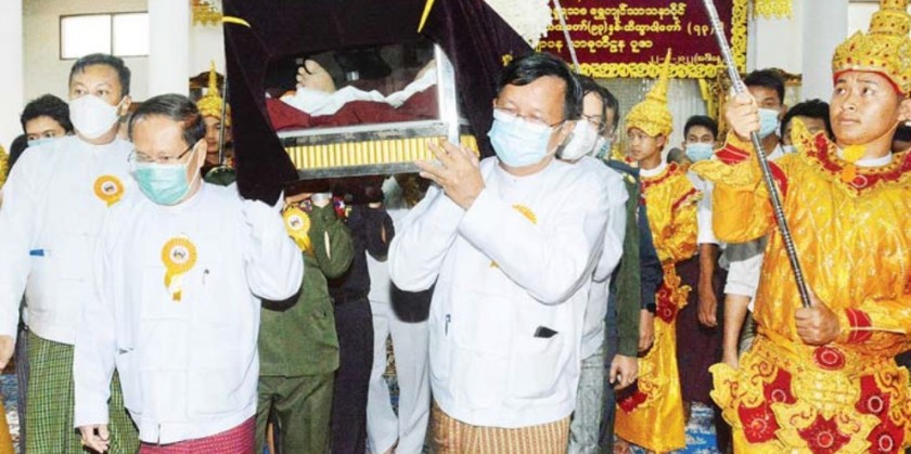 The SAC Secretary and the congregation later listened to thesermon on remorse delivered by Chancellor of Sitagu International Buddhist Academies DrBhaddanta Nyanissara and shared the merits gained. The remains of the late Sayadaw were conveyed onto the Karaweik decorated float and then to Thuwunna Bhumi Event Park in Thingangyun Township, where the crematorium was built.