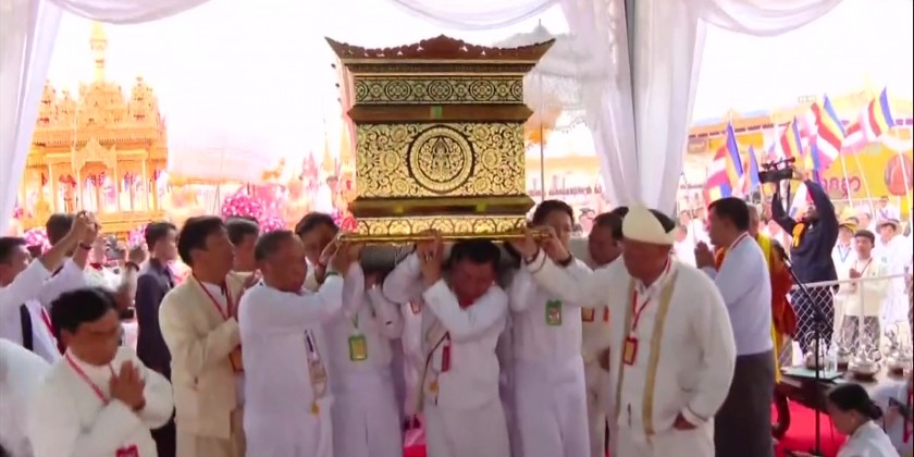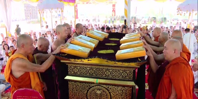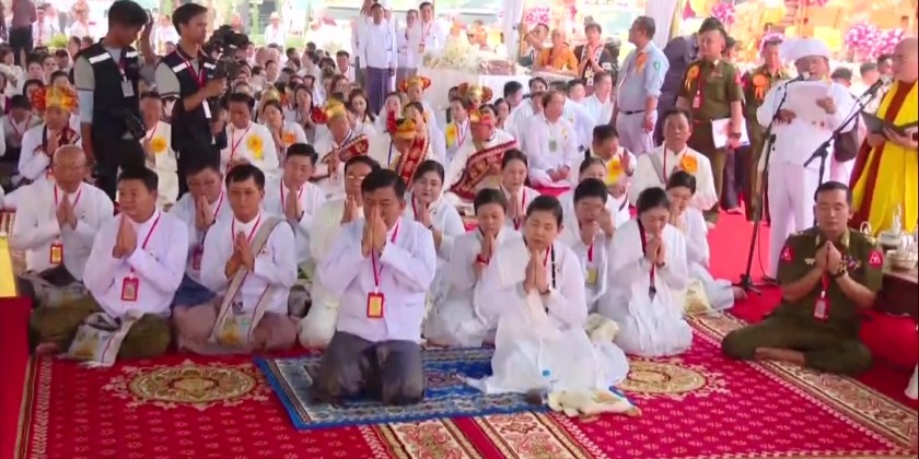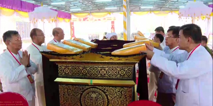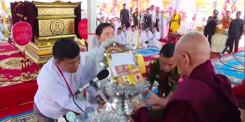 The final rites of the Late Presiding Patron Sayadaw of Naga Hnakaung Monastery in Tachileik Township, Shan State (East), State Ovadacariya Abhidhaja Maha Rattha Guru Abhidhaja Agga Maha Saddhamma Jotika Dr. Bhaddanta Dhammasiri , took place in Tachileik in the afternoon of 6th April. First, Sayadaws recited the Samvega Gahta and Chief of General Staff (Army, Navy and Air) General Maung Maung Aye and congregation took the Five Precepts from Thanlyin Min Kyaung Sayadawgyi.