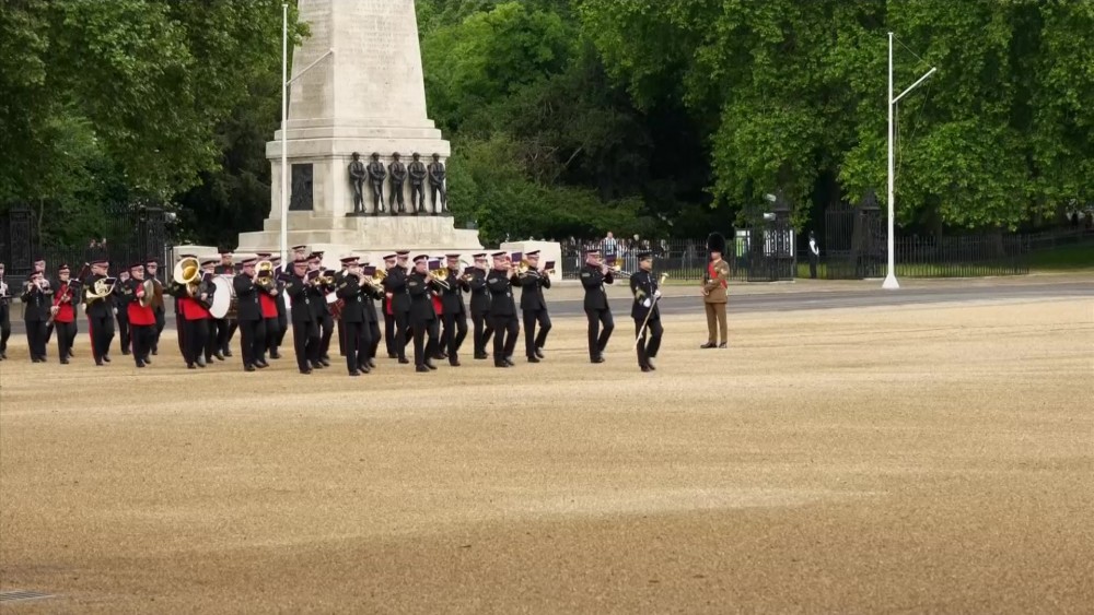 Members of the U.K.'s military on Thursday rehearsed the Trooping of the Colour ceremony ahead of the Platinum Jubilee celebrations to mark 70 years since Queen Elizabeth II's ascension to the throne.