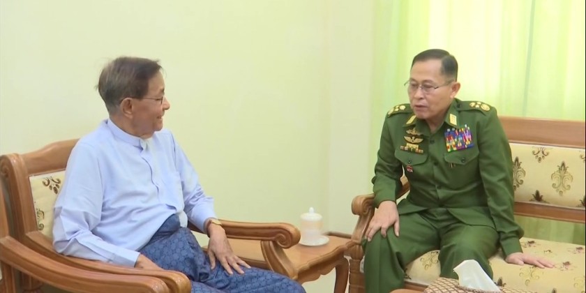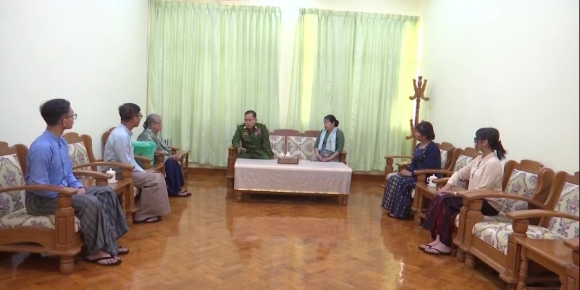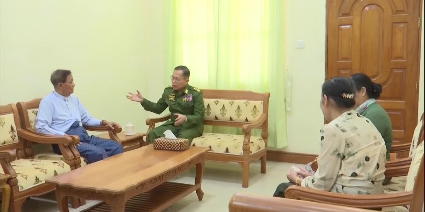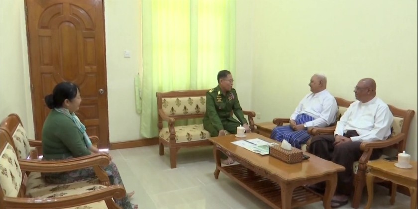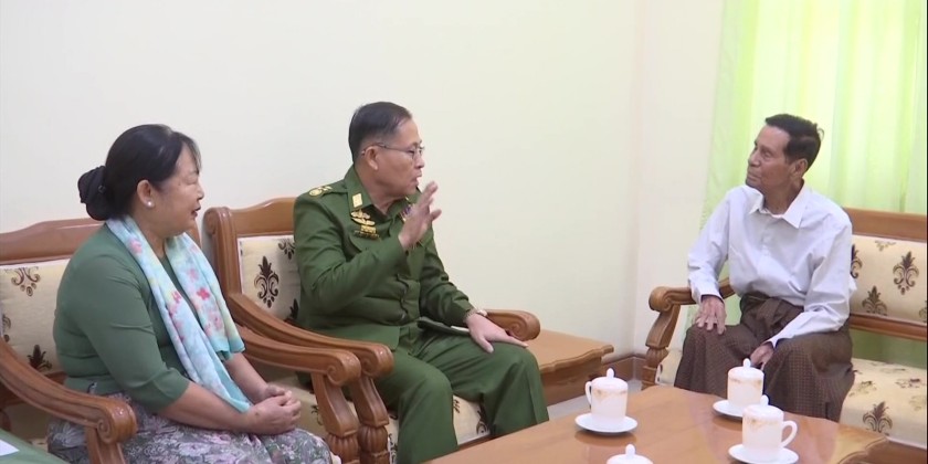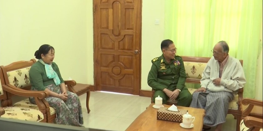 On behalf of Chairman of the State Security and Peace Commission, Commander-in-Chief of Defence Services Senior General Min Aung Hlaing and wife Daw Kyu Kyu Hla, Vice Chairman of the State Security and Peace Commission, Deputy Commander-in-Chief of Defence Services Vice Senior General Soe Win and wife cordially met with the retired senior military officials and wives who are temporarily accommodating at Bayintnaung Villa in Nay Pyi Taw to attend the 81stAnniversary Armed Forces Day Parade which falls on 27th March.