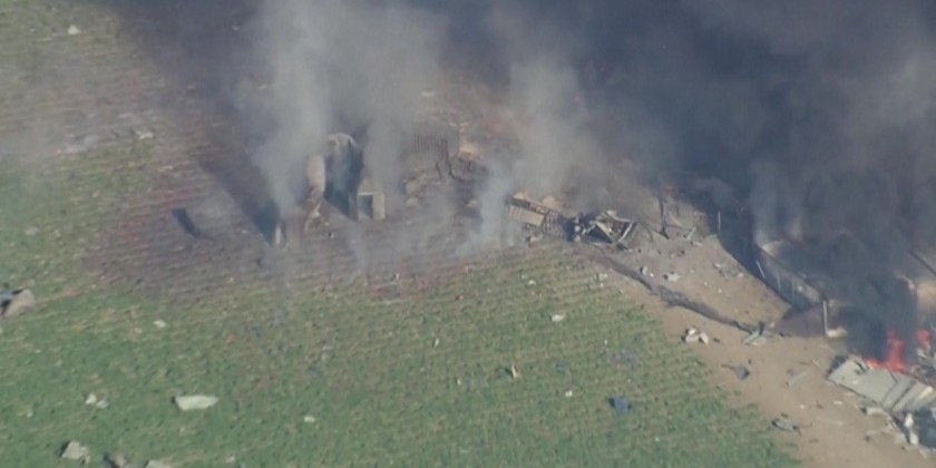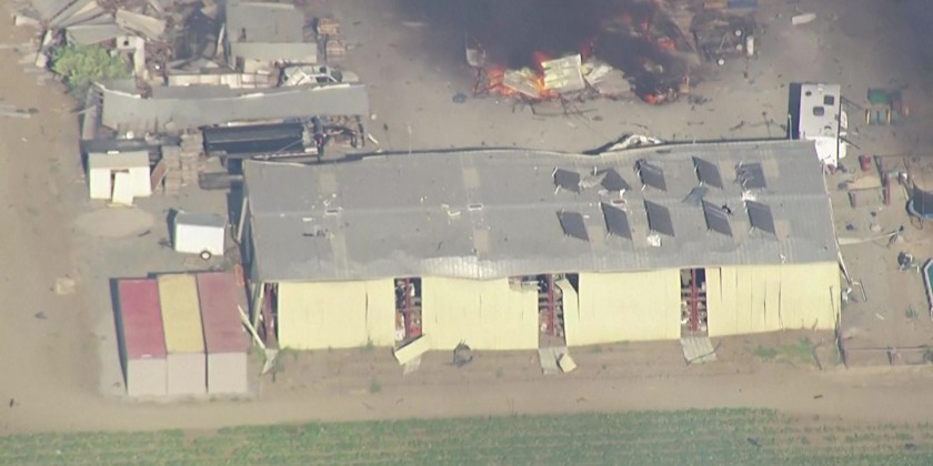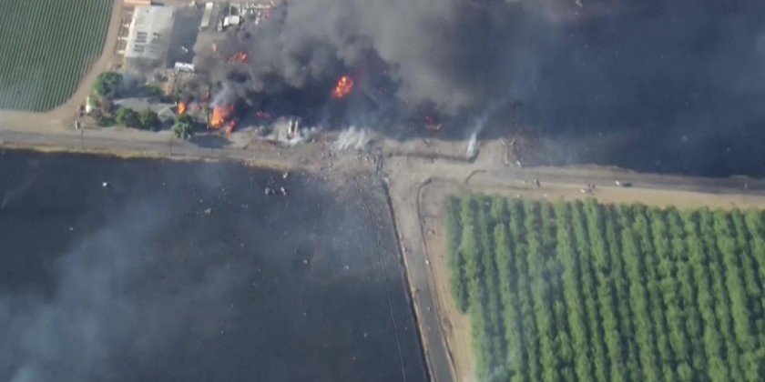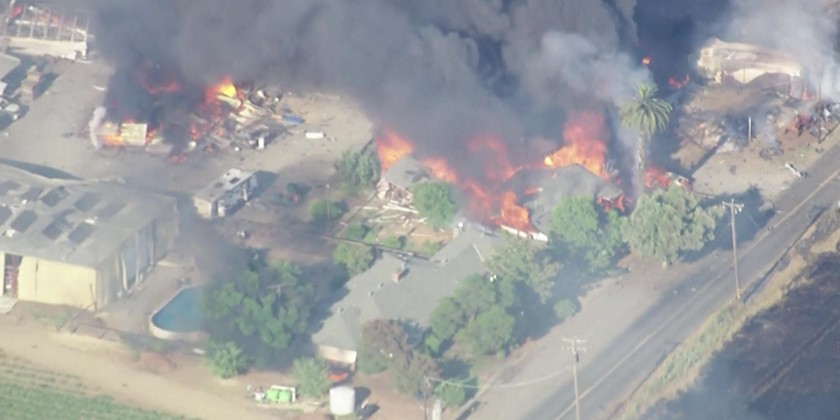 Fire breaks out after multiple explosions at California fireworks warehouse