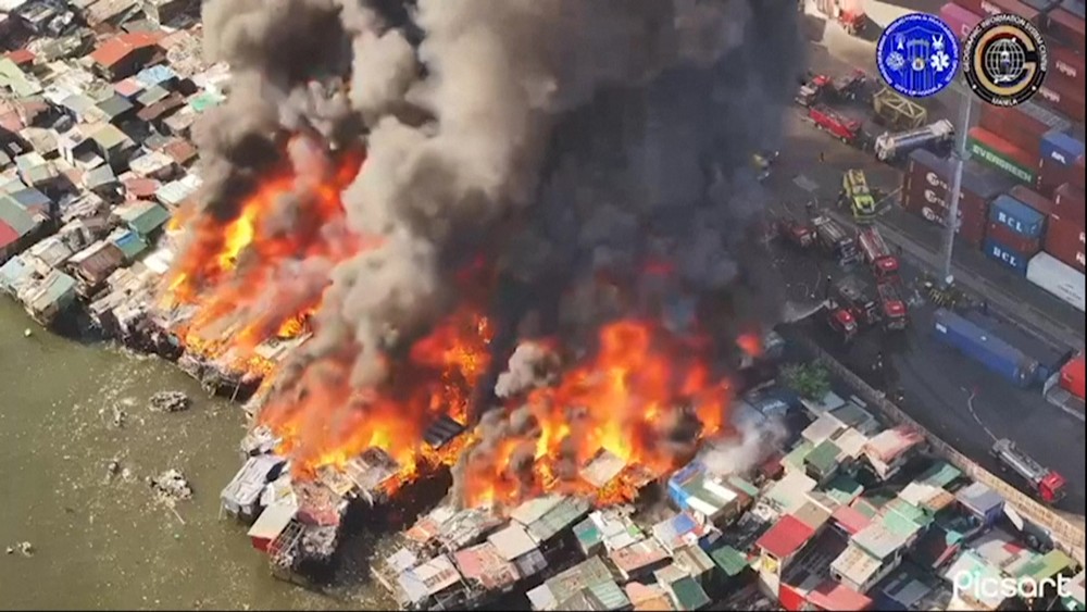 A huge fire has broken out in the Philippines capital of Manila on Sunday. Manila Fire District said around 1,000 houses were burned in the blaze that is thought to have started on the second floor of one of the homes. There were no immediate reports of casualties.