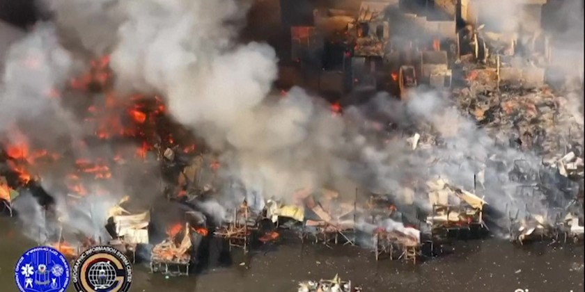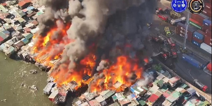 Drone footage shared online by the city's disaster agency showed houses in Isla Puting Bato village of Manila razed to the ground. The structures housed around 2,000 families, according to the fire department. Fire and disaster services deployed 36 trucks and four fire boats while the country's airforce sent in two helicopters to help extinguish the fire.