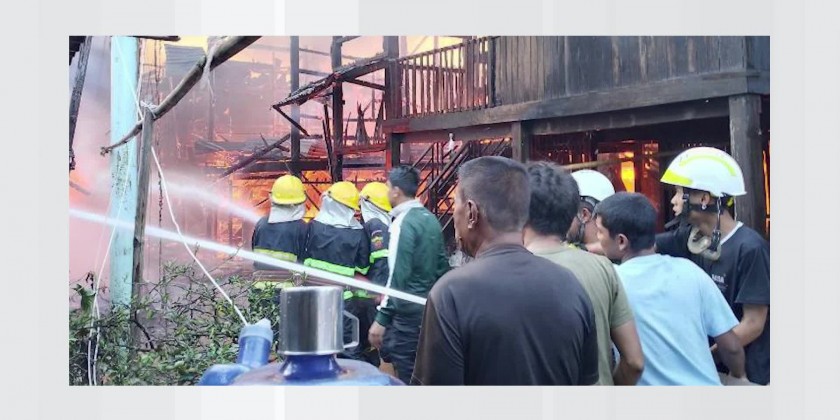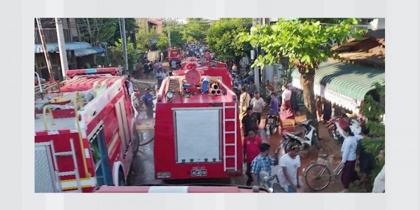 A fire broke out at Bayintnaung street (1), ThinbawOo section, Myoma (1) Ward in Mudon Township of Mon State at 3:30 pm on 23rd December.