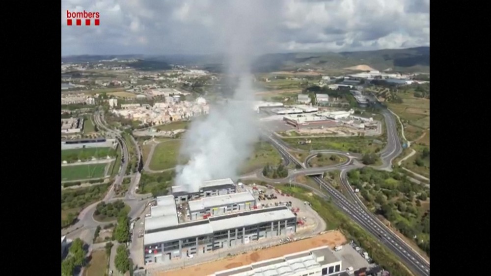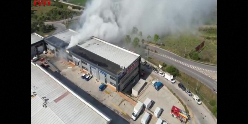 The blaze broke out in a building in Vilanova i la Geltrú, a coastal city just south of Barcelona, which stored pool cleaning products. The regional fire service confirmed the fire's location and the risk posed by the toxic fumes. Local authorities are monitoring the situation closely as emergency teams work to control the blaze.