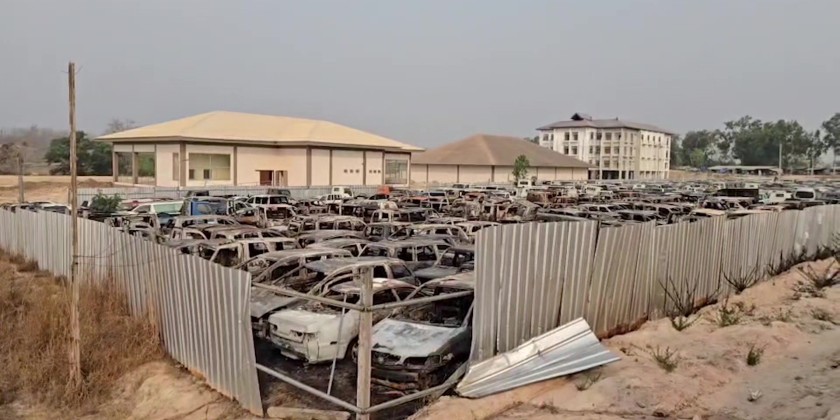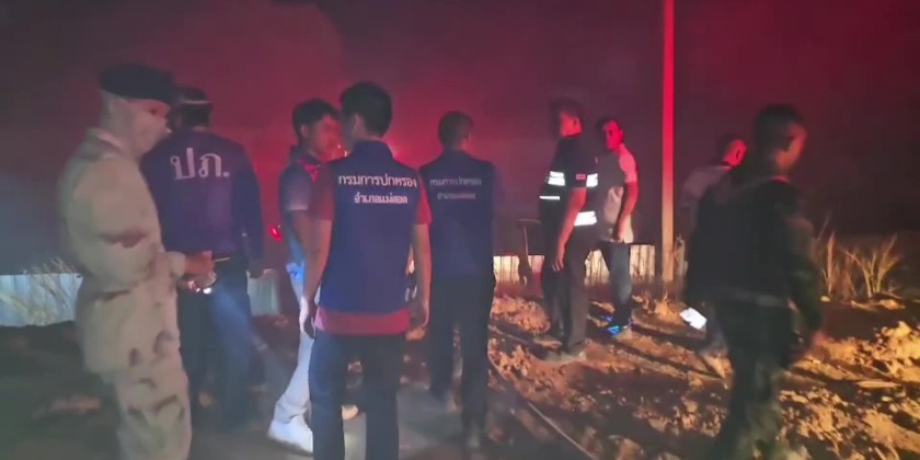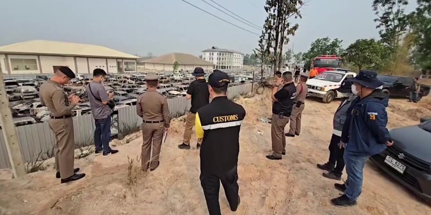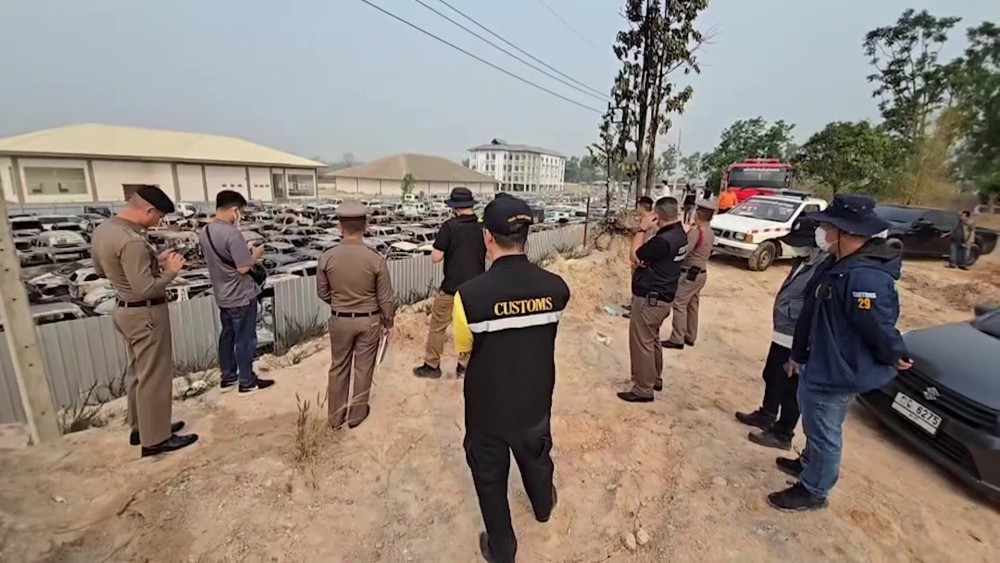 Initial investigations revealed that the yard held nearly 800 vehicles seized by the Mae Sot Customs Office, pending auction. Forensic officers from Provincial Police Region 6, along with customs officials, inspected the scene on Wednesday morning.