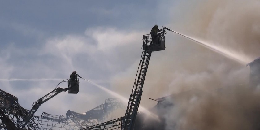 Danish media quoted an official with Copenhagen’s emergency service said that the fire at the Børsen (exchange) had completely destroyed the building’s spire and that it was a matter of moments before the spire would collapse.