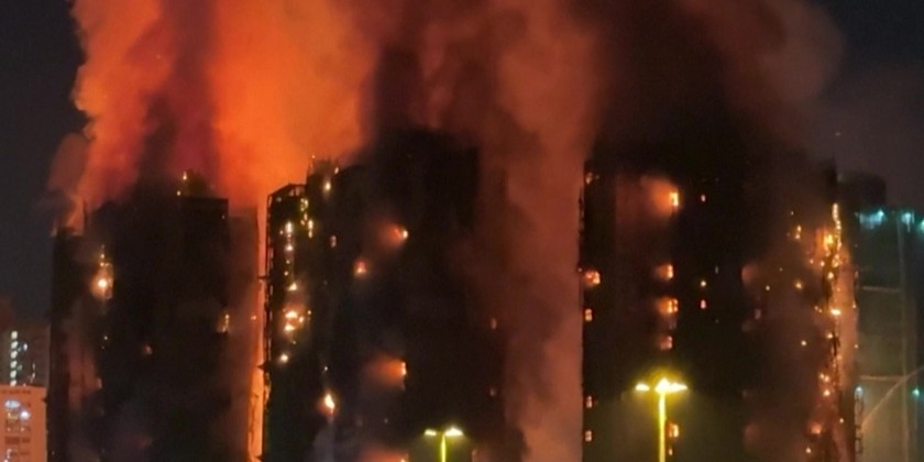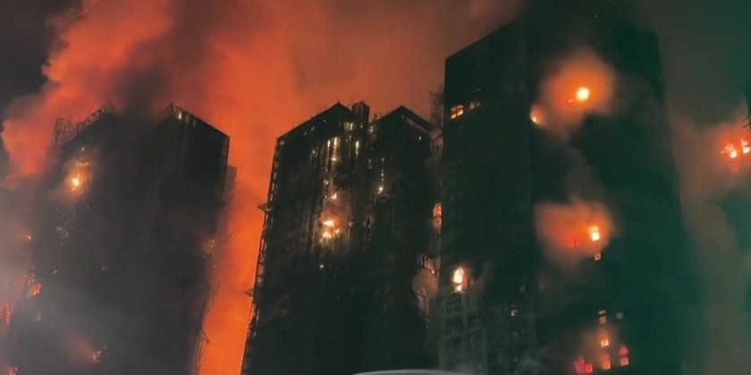 At least four people were killed when a fire engulfed several high-rise blocks in a Hong Kong residential estate on Wednesday. Massive flames took hold on the bamboo scaffolding on at least three apartment blocks at Wang Fuk Court in Tai Po, a district in the northern part of the Chinese financial hub, before spreading to other parts of the buildings.