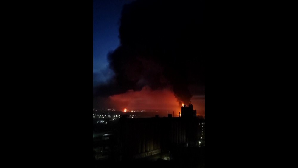 Russian news reported that another oil storage facility in Bryansk also caught fire early Monday. The causes of both fires were being investigated.